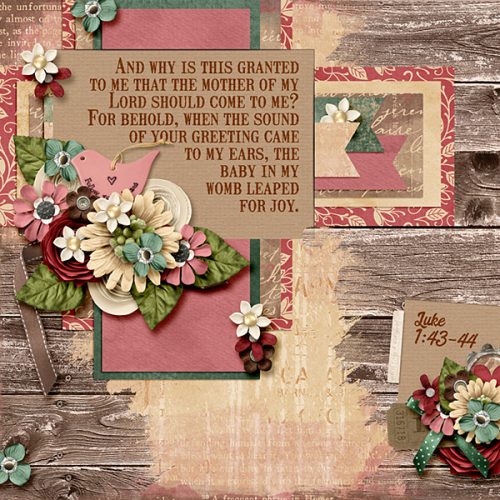 For those who are unfamiliar with scrapbooking, the pages made are called “layouts.” The digital scrapbook “world” has a regular practice where they choose a “layout of the day” to feature (which is an honor). The name of this page is “Layout for Today” because there is one per day (but the words “of the” [day] were intentionally not used, because the point is to bring honor and glory to God, not to any person).