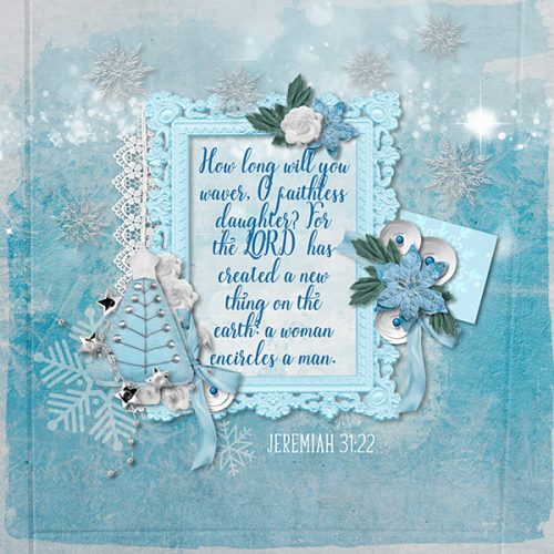 For those who are unfamiliar with scrapbooking, the pages made are called “layouts.” The digital scrapbook “world” has a regular practice where they choose a “layout of the day” to feature (which is an honor). The name of this page is “Layout for Today” because there is one per day (but the words “of the” [day] were intentionally not used, because the point is to bring honor and glory to God, not to any person).