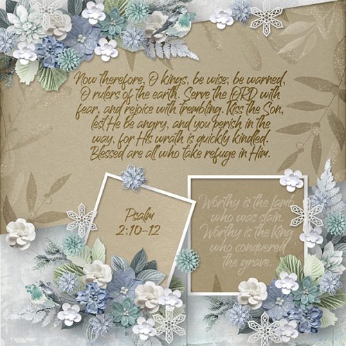 For those who are unfamiliar with scrapbooking, the pages made are called “layouts.” The digital scrapbook “world” has a regular practice where they choose a “layout of the day” to feature (which is an honor). The name of this page is “Layout for Today” because there is one per day (but the words “of the” [day] were intentionally not used, because the point is to bring honor and glory to God, not to any person).