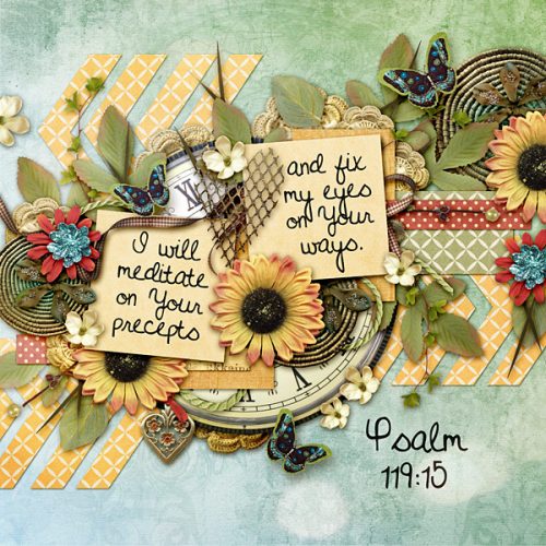 For those who are unfamiliar with scrapbooking, the pages made are called “layouts.” The digital scrapbook “world” has a regular practice where they choose a “layout of the day” to feature (which is an honor). The name of this page is “Layout for Today” because there is one per day (but the words “of the” [day] were intentionally not used, because the point is to bring honor and glory to God, not to any person).
