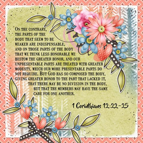 For those who are unfamiliar with scrapbooking, the pages made are called “layouts.” The digital scrapbook “world” has a regular practice where they choose a “layout of the day” to feature (which is an honor). The name of this page is “Layout for Today” because there is one per day (but the words “of the” [day] were intentionally not used, because the point is to bring honor and glory to God, not to any person).