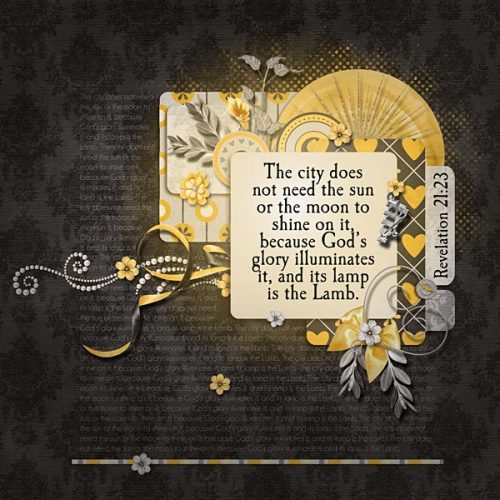 For those who are unfamiliar with scrapbooking, the pages made are called “layouts.” The digital scrapbook “world” has a regular practice where they choose a “layout of the day” to feature (which is an honor). The name of this page is “Layout for Today” because there is one per day (but the words “of the” [day] were intentionally not used, because the point is to bring honor and glory to God, not to any person).