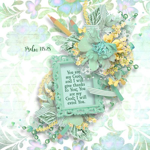 For those who are unfamiliar with scrapbooking, the pages made are called “layouts.” The digital scrapbook “world” has a regular practice where they choose a “layout of the day” to feature (which is an honor). The name of this page is “Layout for Today” because there is one per day (but the words “of the” [day] were intentionally not used, because the point is to bring honor and glory to God, not to any person).
