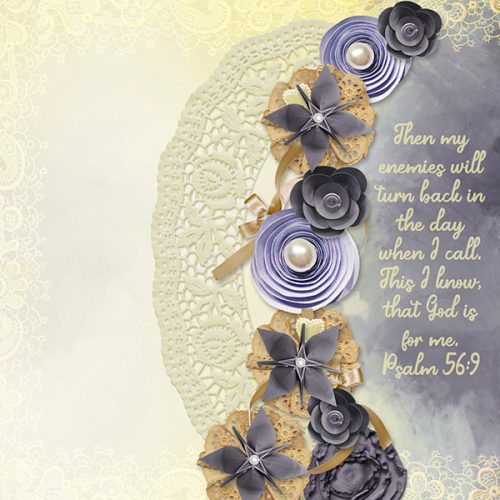 For those who are unfamiliar with scrapbooking, the pages made are called “layouts.” The digital scrapbook “world” has a regular practice where they choose a “layout of the day” to feature (which is an honor). The name of this page is “Layout for Today” because there is one per day (but the words “of the” [day] were intentionally not used, because the point is to bring honor and glory to God, not to any person).