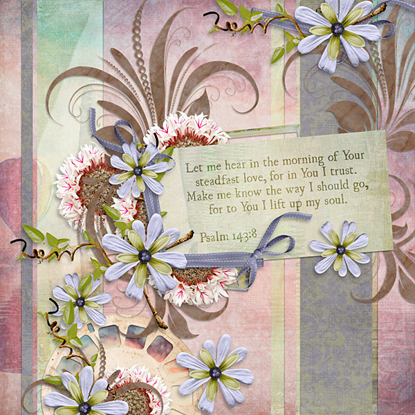 For those who are unfamiliar with scrapbooking, the pages made are called “layouts.” The digital scrapbook “world” has a regular practice where they choose a “layout of the day” to feature (which is an honor). The name of this page is “Layout for Today” because there is one per day (but the words “of the” [day] were intentionally not used, because the point is to bring honor and glory to God, not to any person).