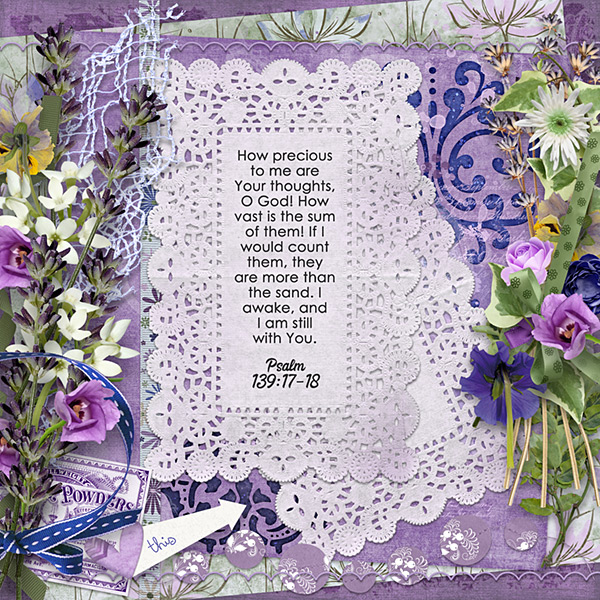 For those who are unfamiliar with scrapbooking, the pages made are called “layouts.” The digital scrapbook “world” has a regular practice where they choose a “layout of the day” to feature (which is an honor). The name of this page is “Layout for Today” because there is one per day (but the words “of the” [day] were intentionally not used, because the point is to bring honor and glory to God, not to any person).