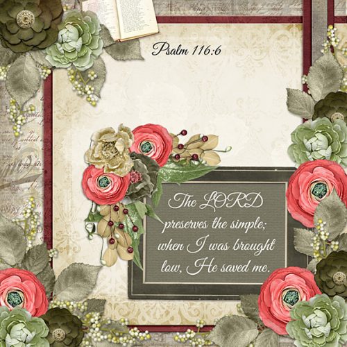 For those who are unfamiliar with scrapbooking, the pages made are called “layouts.” The digital scrapbook “world” has a regular practice where they choose a “layout of the day” to feature (which is an honor). The name of this page is “Layout for Today” because there is one per day (but the words “of the” [day] were intentionally not used, because the point is to bring honor and glory to God, not to any person).