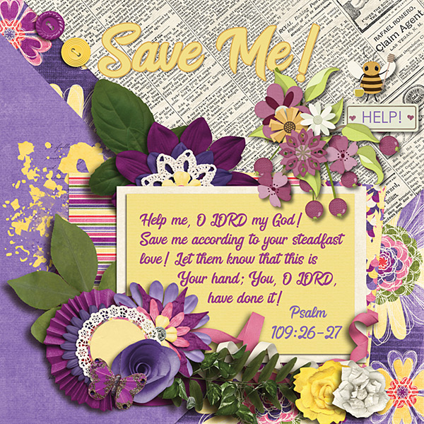 For those who are unfamiliar with scrapbooking, the pages made are called “layouts.” The digital scrapbook “world” has a regular practice where they choose a “layout of the day” to feature (which is an honor). The name of this page is “Layout for Today” because there is one per day (but the words “of the” [day] were intentionally not used, because the point is to bring honor and glory to God, not to any person).