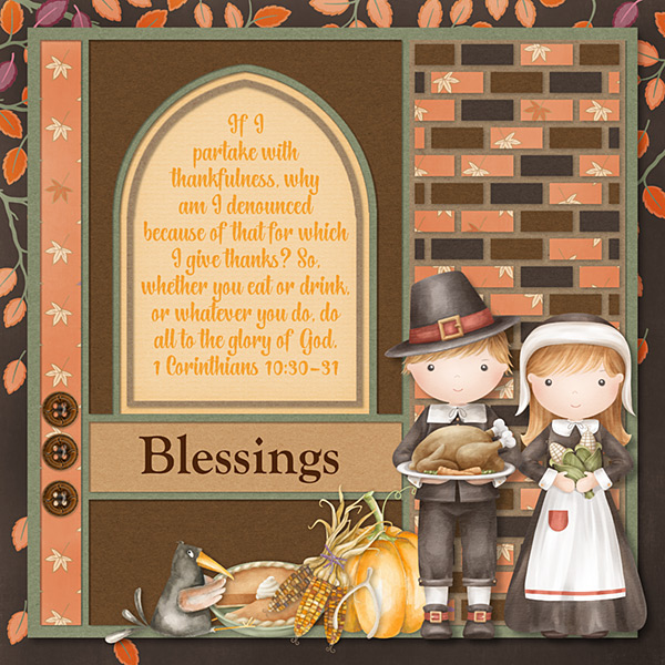 For those who are unfamiliar with scrapbooking, the pages made are called “layouts.” The digital scrapbook “world” has a regular practice where they choose a “layout of the day” to feature (which is an honor). The name of this page is “Layout for Today” because there is one per day (but the words “of the” [day] were intentionally not used, because the point is to bring honor and glory to God, not to any person).