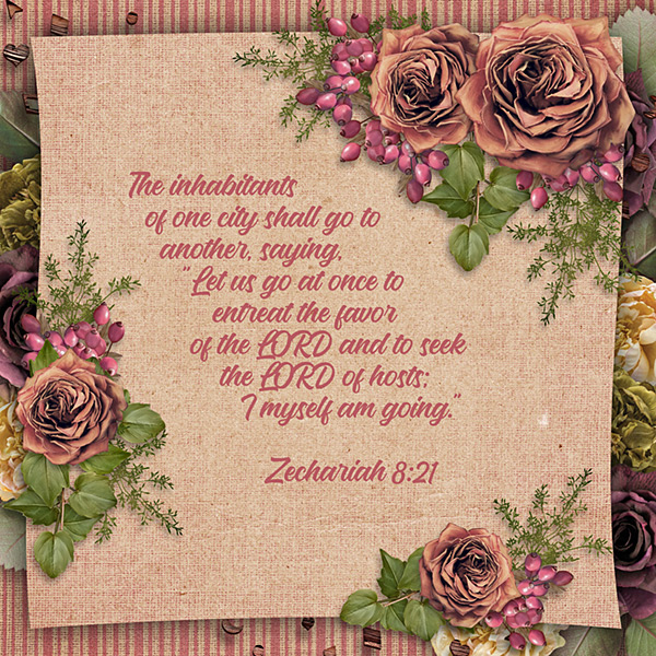 The inhabitants of one city shall go to another, saying, “Let us go at once to entreat the favor of the LORD and to seek the LORD of hosts; I myself am going.” Zechariah 8:21