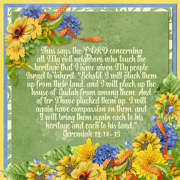 Thus says the LORD concerning all My evil neighbors who touch the heritage that I have given My people Israel to inherit: “Behold, I will pluck them up from their land, and I will pluck up the house of Judah from among them. And after I have plucked them up, I will again have compassion on them, and I will bring them again each to his heritage and each to his land.” Jeremiah 12:14-15
