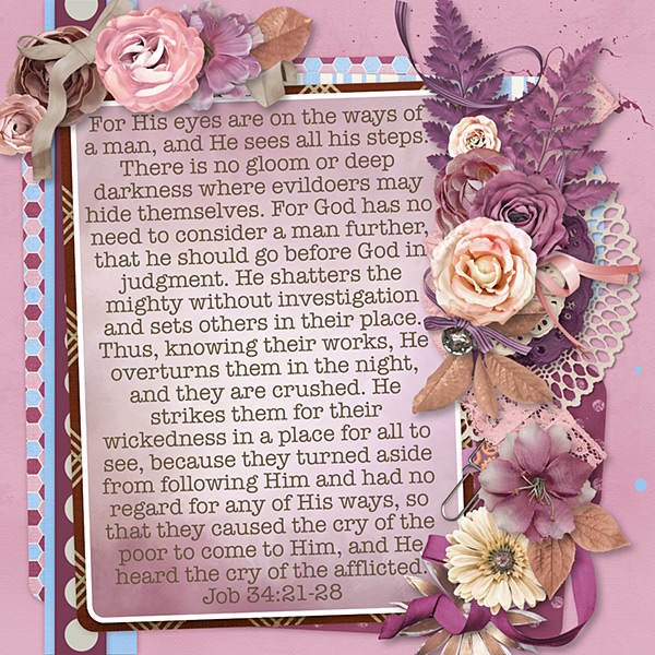For His eyes are on the ways of a man, and He sees all his steps. There is no gloom or deep darkness where evildoers may hide themselves. For God has no need to consider a man further, that he should go before God in judgment. He shatters the mighty without investigation and sets others in their place. Thus, knowing their works, He overturns them in the night, and they are crushed. He strikes them for their wickedness in a place for all to see, because they turned aside from following Him and had no regard for any of His ways, so that they caused the cry of the poor to come to Him, and He heard the cry of the afflicted. Job 34:21-28