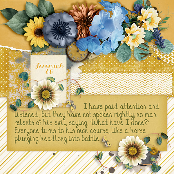I have paid attention and listened, but they have not spoken rightly; no man relents of his evil, saying, ‘What have I done?’ Everyone turns to his own course, like a horse plunging headlong into battle. Jeremiah 8:6