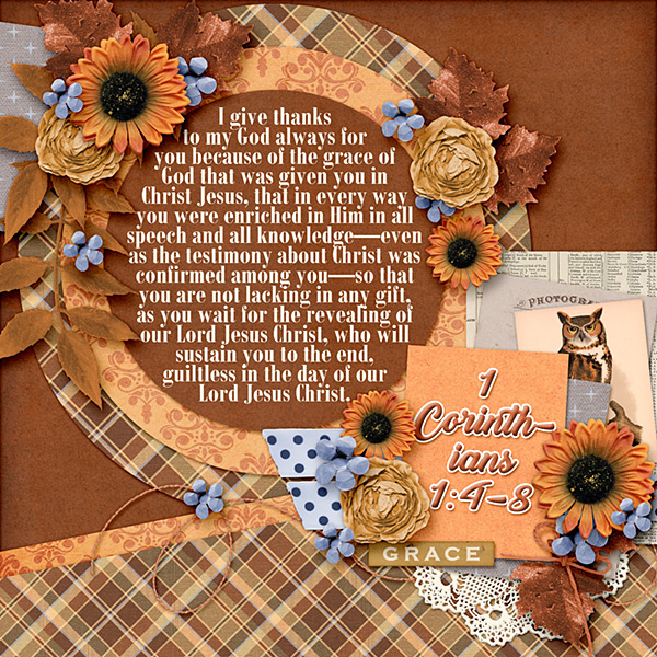 I give thanks to my God always for you because of the grace of God that was given you in Christ Jesus, that in every way you were enriched in Him in all speech and all knowledge—even as the testimony about Christ was confirmed among you—so that you are not lacking in any gift, as you wait for the revealing of our Lord Jesus Christ, who will sustain you to the end, guiltless in the day of our Lord Jesus Christ. 1 Corinthians 1:4-8
