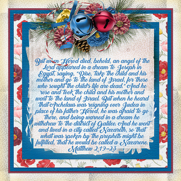 But when Herod died, behold, an angel of the Lord appeared in a dream to Joseph in Egypt, saying, “Rise, take the child and his mother and go to the land of Israel, for those who sought the child’s life are dead.” And he rose and took the child and his mother and went to the land of Israel. But when he heard that Archelaus was reigning over Judea in place of his father Herod, he was afraid to go there, and being warned in a dream he withdrew to the district of Galilee. And he went and lived in a city called Nazareth, so that what was spoken by the prophets might be fulfilled, that he would be called a Nazarene. Matthew 2:19-23