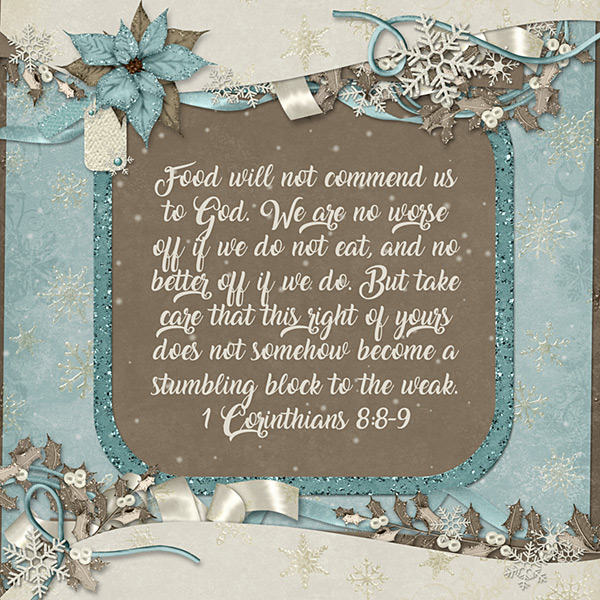 Food will not commend us to God. We are no worse off if we do not eat, and no better off if we do. But take care that this right of yours does not somehow become a stumbling block to the weak. 1 Corinthians 8:8-9