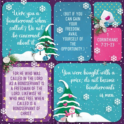 For those who are unfamiliar with scrapbooking, the pages made are called “layouts.” The digital scrapbook “world” has a regular practice where they choose a “layout of the day” to feature (which is an honor). The name of this page is “Layout for Today” because there is one per day (but the words “of the” [day] were intentionally not used, because the point is to bring honor and glory to God, not to any person).
