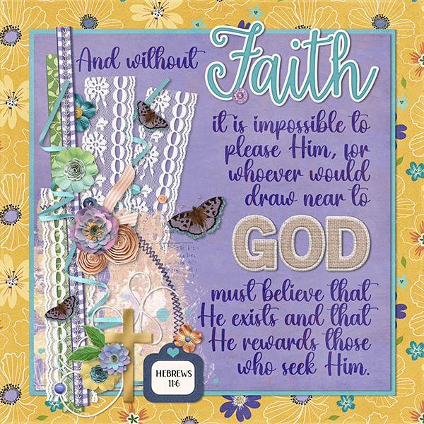 For those who are unfamiliar with scrapbooking, the pages made are called “layouts.” The digital scrapbook “world” has a regular practice where they choose a “layout of the day” to feature (which is an honor). The name of this page is “Layout for Today” because there is one per day (but the words “of the” [day] were intentionally not used, because the point is to bring honor and glory to God, not to any person).