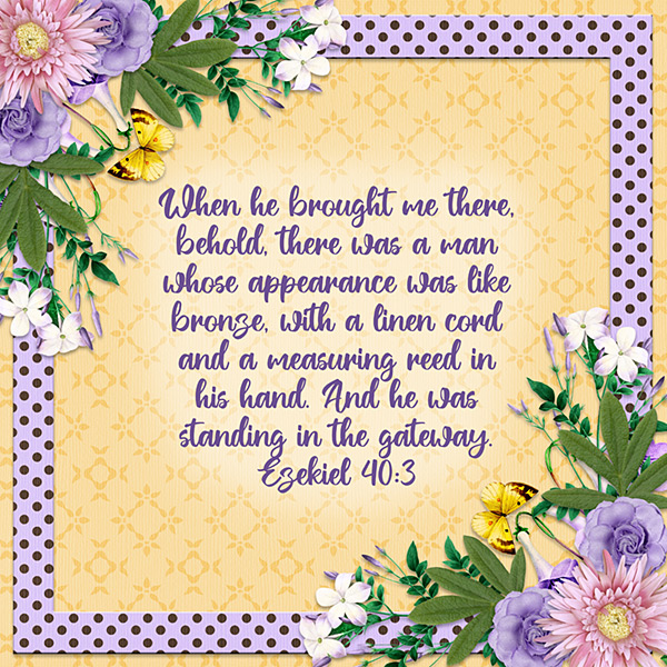When he brought me there, behold, there was a man whose appearance was like bronze, with a linen cord and a measuring reed in his hand. And he was standing in the gateway. Ezekiel 40:3