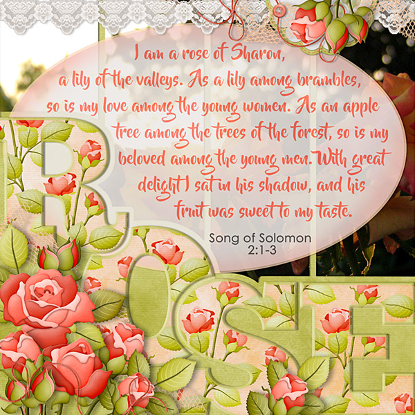 I am a rose of Sharon, a lily of the valleys. As a lily among brambles, so is my love among the young women. As an apple tree among the trees of the forest, so is my beloved among the young men. With great delight I sat in his shadow, and his fruit was sweet to my taste. Song of Solomon 2:1-3