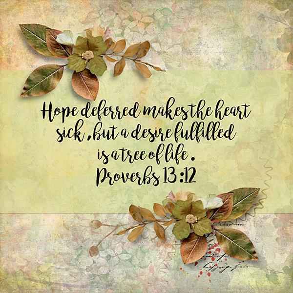 Hope deferred makes the heart sick, but a desire fulfilled is a tree of life. Proverbs 13:12