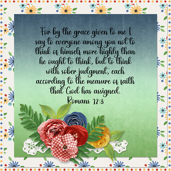 For by the grace given to me I say to everyone among you not to think of himself more highly than he ought to think, but to think with sober judgment, each according to the measure of faith that God has assigned. Romans 12:3