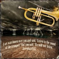 I set watchmen over you and said, ‘Listen to the sound of the trumpet!’ But you said, ‘We will not...