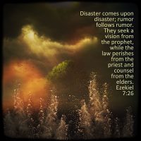 Disaster comes upon disaster; rumor follows rumor. They seek a vision from the prophet, while the law perishes from the...