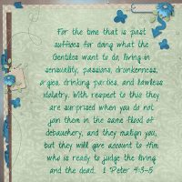 For the time that is past suffices for doing what the Gentiles want to do, living in sensuality, passions, drunkenness,...