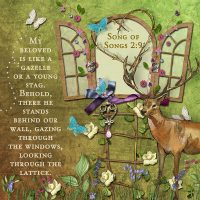My beloved is like a gazelle or a young stag. Behold, there he stands behind our wall, gazing through the...