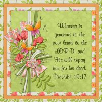 Whoever is generous to the poor lends to the LORD, and He will repay him for his deed. Proverbs 19:17...