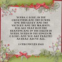 Yours, O Lord, is the greatness and the power and the glory and the victory and the majesty, for all...
