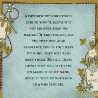 Remember the word that I said to you: ‘A servant is not greater than his master.’ If they persecuted Me,...