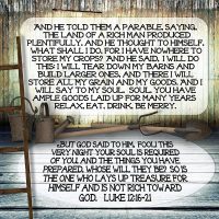 And he told them a parable, saying, “The land of a rich man produced plentifully, and he thought to himself,...