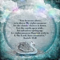 “You heavens above,rain down My righteousness;let the clouds shower it down.Let the earth open wide,let salvation spring up,let righteousness flourish...
