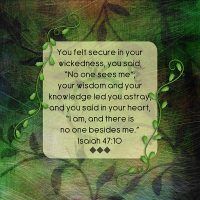 You felt secure in your wickedness, you said, “No one sees me”; your wisdom and your knowledge led you astray,...