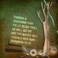 Though a righteous manfalls seven times,he will get up,but the wicked willstumble into ruin.Proverbs 24:16 papers (blended) by Marta van...