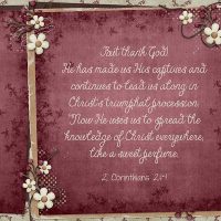 But thank God! He has made us His captives and continues to lead us along in Christ’s triumphal procession. Now...