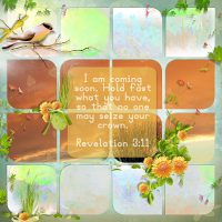 I am coming soon. Hold fast what you have, so that no one may seize your crown. Revelation 3:11...