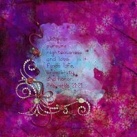 Whoever pursues righteousness and love finds life, prosperity and honor. Proverbs 21:21 kits: Let Us Love Winter by Marta van...