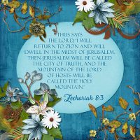 Thus says the Lord, ‘I will return to Zion and will dwell in the midst of Jerusalem. Then Jerusalem will...